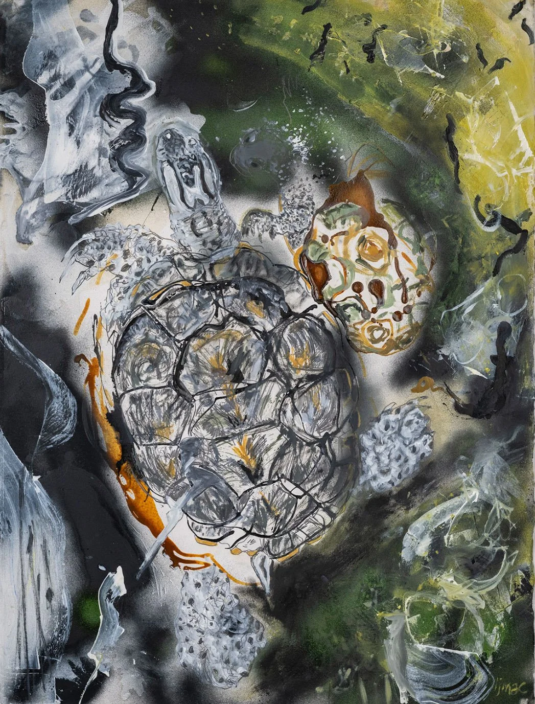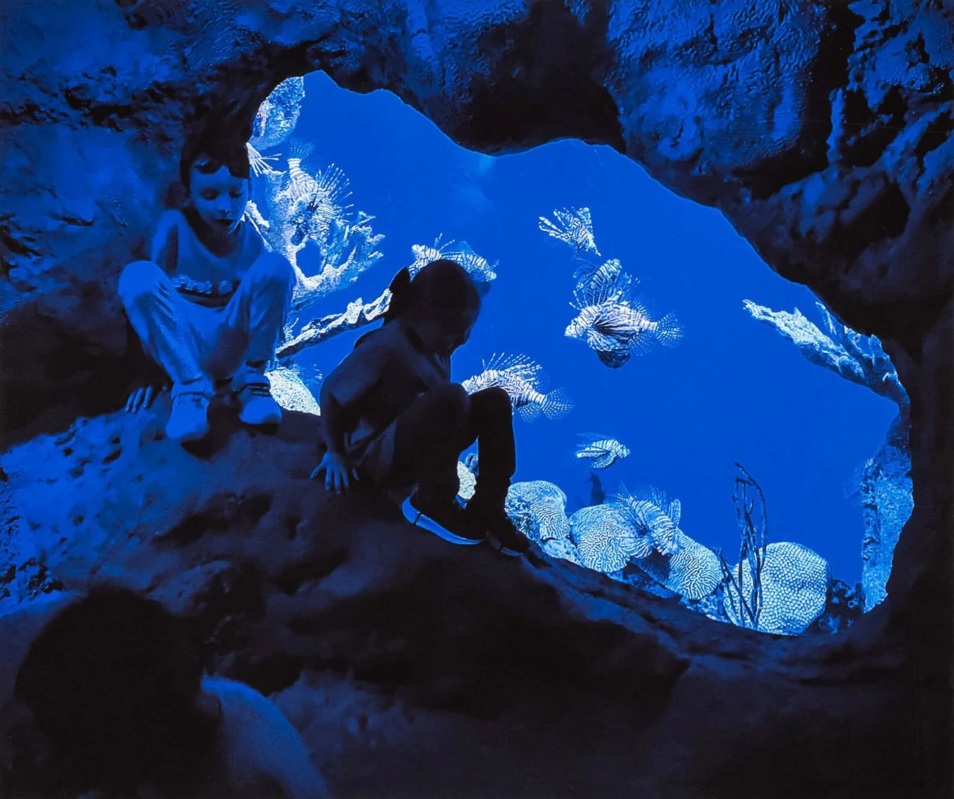 Wilson’s source material is resolutely ordinary—zoos, aquariums, storefronts. Filtered through visual noise, familiar environments are pushed into near-abstraction. The resulting photos offer images already slipping loose from straightforward description. With large-scale prints of these on paper, McCarthy begins her counterpoint, tracing and interrupting rather than neatly “completing” the photos. Her gestures read more as incursion than embellishment. The collaboration plays out as a charged visual exchange, wherein each artist risks being overtaken by the other’s language.