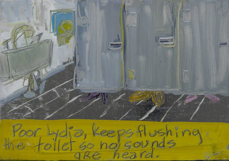 True to its roots in the dramatic ex-voto produced after the 16th century, the Poor Lydia series depicts a variety of outrageous, reflective, embarrassing and humorous situations that we all seem to have survived. Lydia shares her most unfiltered thoughts about every aspect of her life—unanticipated bowel movements, masturbation, blunt conversations with co-workers, childhood memories as well as more somber questions like, “What the hell is wrong with people?” Poor Lydia bares it all for us to consider.